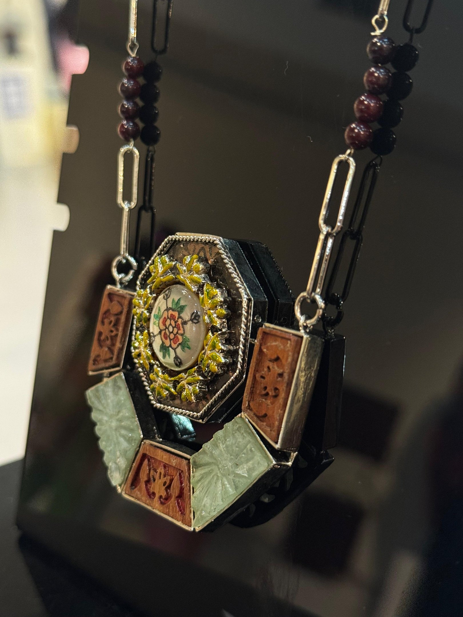 Handcrafted jewelry and original artworks on display.