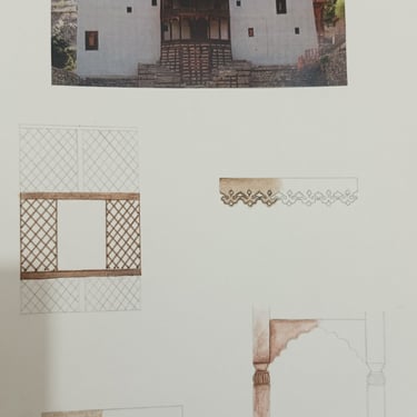 This jewellery collection is inspired by the architectural beauty of Khaplu, the administrative capital of Ghanche in Baltistan, a region rich in culture and heritage. This region’s three historical landmarks, Chaqchan Mosque, Astana Mir Muhammad, and Khaplu Fort, serves as the main inspiration for this project. The Khaplu architecture’s unique artistry such as intricate motifs/patterns, jali work, wood carvings, and color palettes found in these buildings served as the foundation for the designs. By combining traditional elements with modern techniques and different materials, each piece highlights the details and craftsmanship seen in Khaplu’s architecture, transformed into wearable art. To keep the connection to the region alive, the gemstones that are mined from Khaplu have been used, adding authenticity and meaning to the collection. This thesis aims to highlight the beauty of traditional architecture not only as beautiful adornments but also as cultural artifacts that connect the wearer to the rich history of the region. This collection brings attention to the cultural richness of the Khaplu and share its timeless elegance with the world