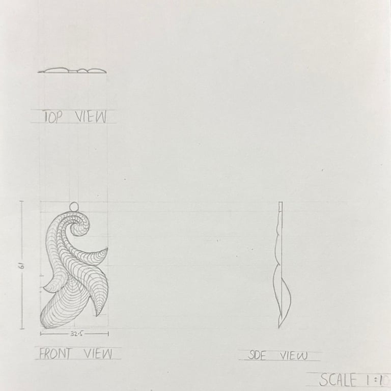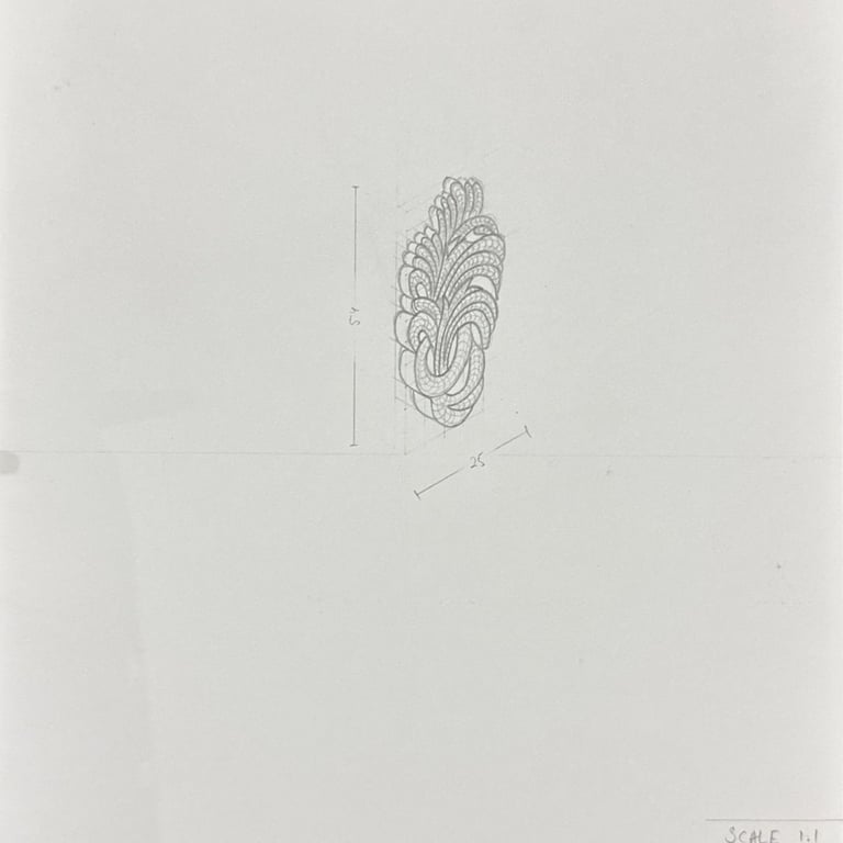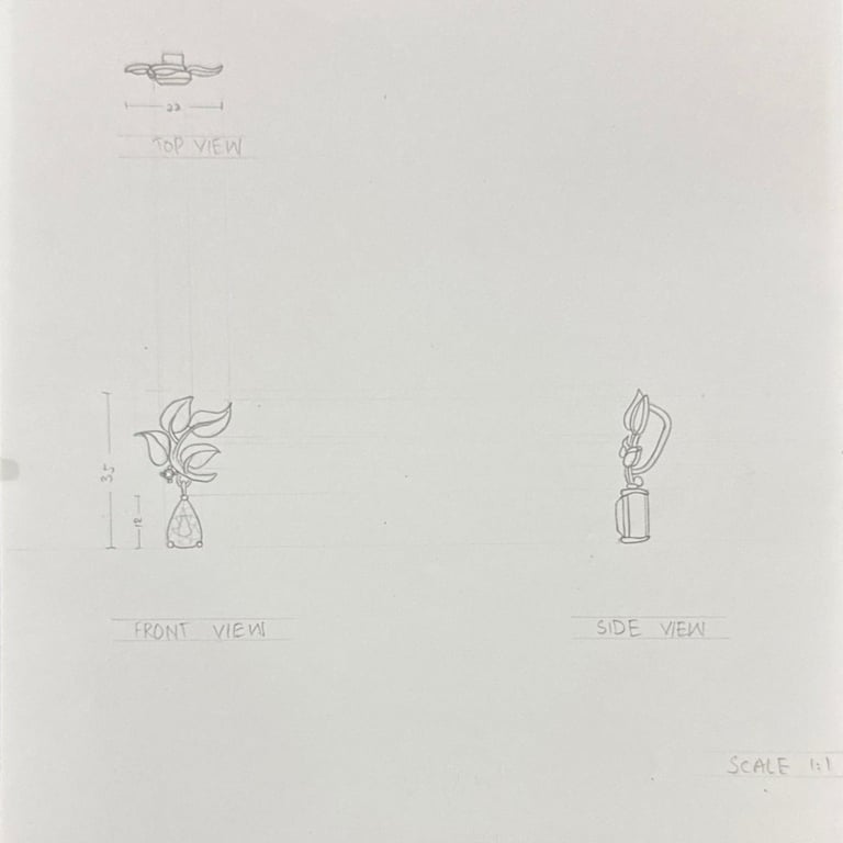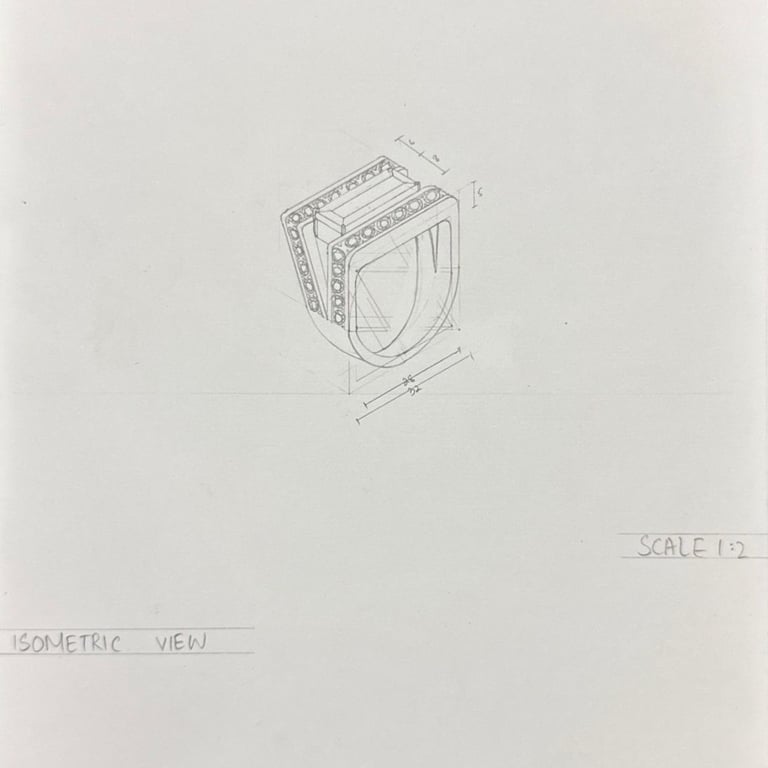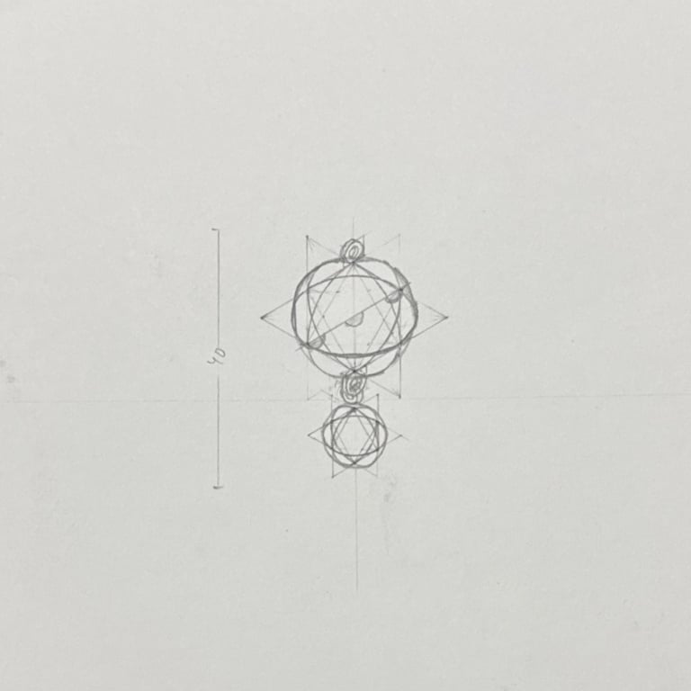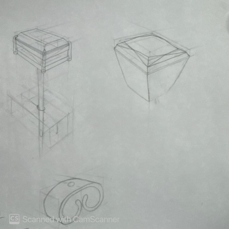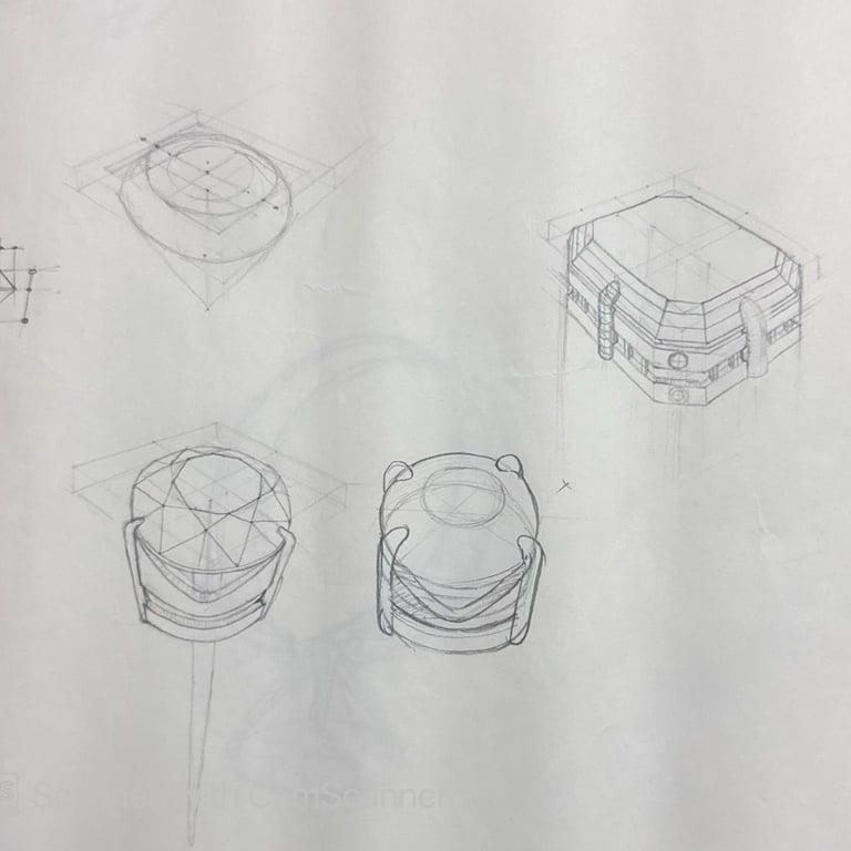 Hand-drawn multi-view and isometric drawings focusing on proportions, structure, and construction details.